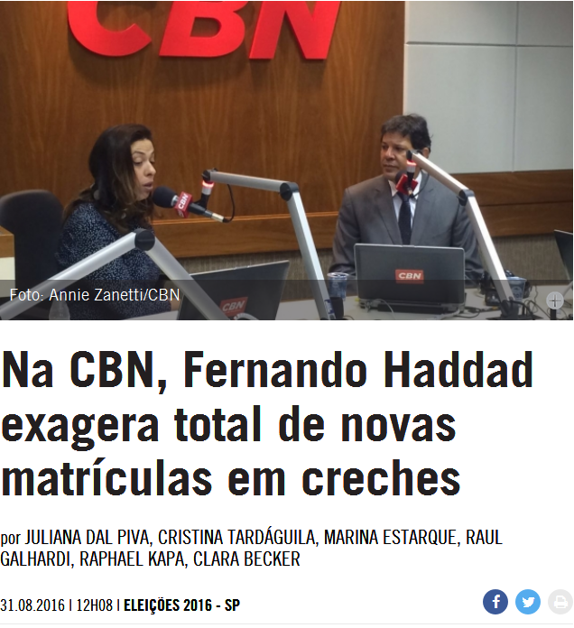 Na CBN, Fernando Haddad exagera total de novas matrículas em creches